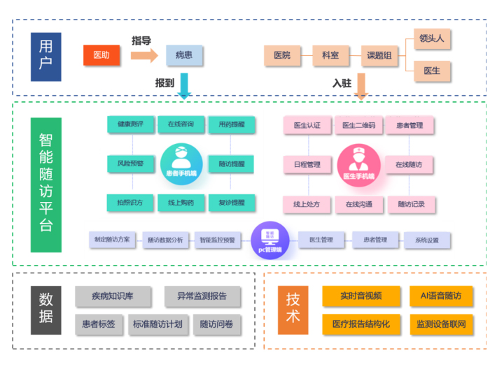 天坦智能開(kāi)發(fā)的慢病管理運(yùn)營(yíng)服務(wù)是一套完整的心血管隨訪標(biāo)準(zhǔn)體系,配合適用性極強(qiáng)的醫(yī)生端可配置界面,滿足絕大多數(shù)開(kāi)展冠心病介入的醫(yī)療機(jī)構(gòu)需求,同時(shí),基于專家隨訪團(tuán)隊(duì)之間的協(xié)作,建立上下聯(lián)動(dòng)的醫(yī)生互動(dòng)機(jī)制,為隨訪的患者提供專業(yè)的管理方案。匹配有人工智能為核心的隨訪管理機(jī)制,可自動(dòng)化發(fā)送患者所需要信息,量表等隨訪內(nèi)容,具備機(jī)器學(xué)習(xí)功能,針對(duì)不同醫(yī)院形成不同模式的隨訪系統(tǒng)配置,匹配個(gè)性化的醫(yī)院隨訪體系,最終以患者交流平臺(tái),建立以患者需求為中心的線上服務(wù)體系,包括專家線上咨詢、藥品直送、可穿戴式設(shè)備居家監(jiān)護(hù)、護(hù)理居家康復(fù)及圍繞手術(shù)全周期的保險(xiǎn)支付產(chǎn)品。形成以醫(yī)學(xué)+智能+個(gè)性化+支付功能為一體的新一代的慢病管理平臺(tái)。