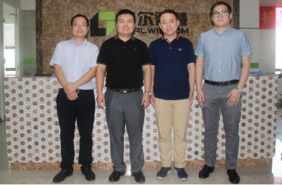 格爾智慧CEO李群(左2)與天坦CEO董杰(左3)一行高管合影